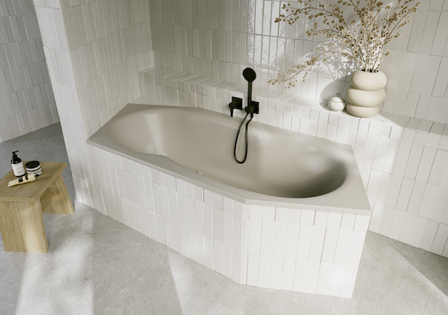6-Eck-Badewanne BetteMetric 6840 206x90x45cm, Fußende rechts, Überlauf vorne, quartz W80477