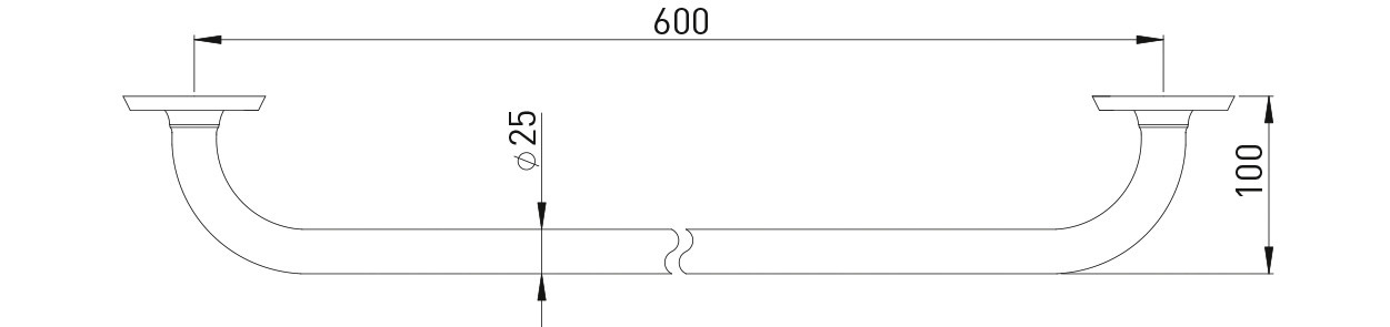 ASW Badetuchhalter Serie 1000 25 x 1000 mm, mit kantigem Mittelteil/Rosetten, Messing verchromt W381217