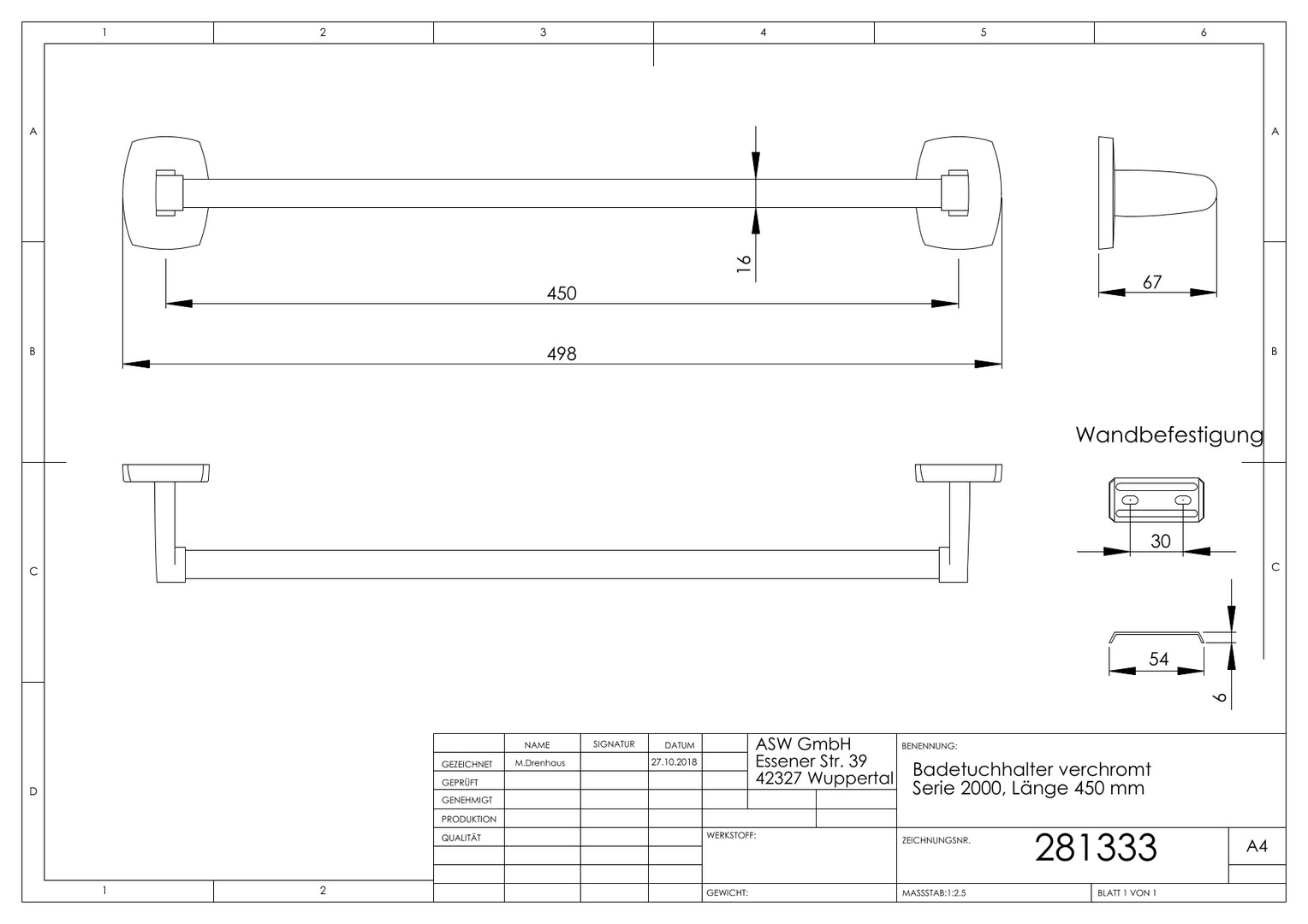 ASW Badetuchhalter Serie 2000 450 mm, Metallguss verchromt