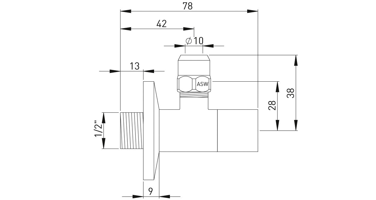 ASW Design-Eckventil 1/2" x 10 mm, Messing verchromt, kantige Bauform