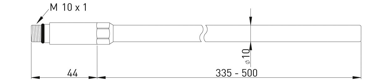 ASW Kupferrohr 10 mm x 335 mm, einerseits AG M 10x1 lang (44mm), verchromt