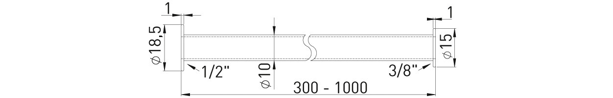 ASW Kupferrohr 10 x 700 mm, 3/8" Bördelx1/2" Bördel, verchromt