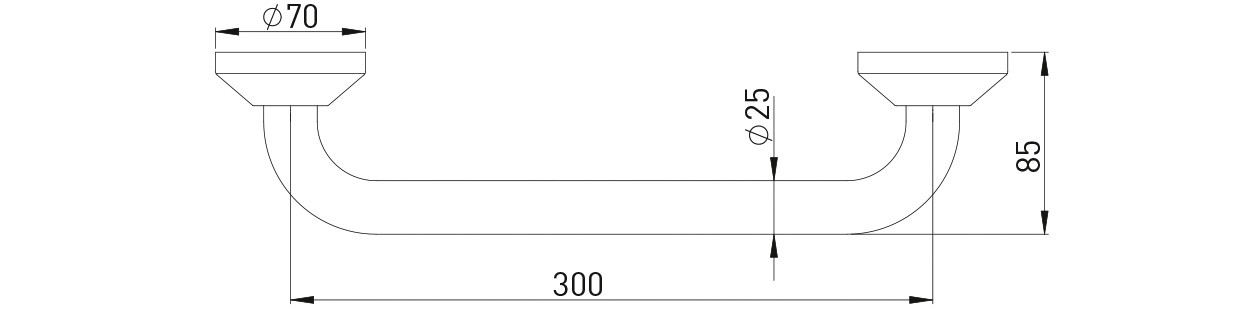 ASW Wannengriff Serie 1000 25 x 300 mm, Rosette d= 70mm, mit verdeckter Befestigung, Messing verchromt