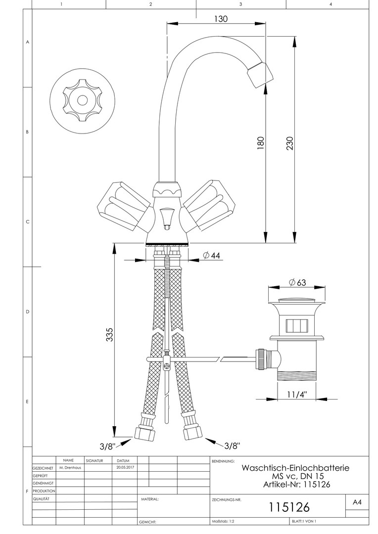 | Anschlussmaß Zufuhr | 3/8 Zoll |