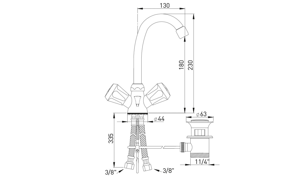 ASW Waschtisch-Zweigriff-Armatur DN 15, Exzentergarnitur 1 1/4", Messing verchromt, Dreikanthaubengriff Metall verchromt