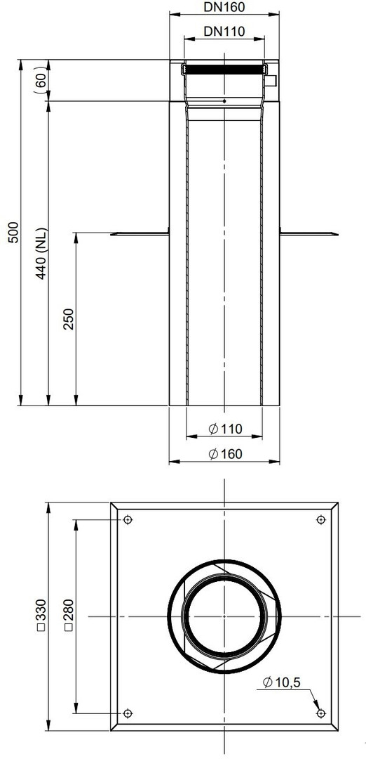 AT Aufsatzplatte DN110/160, 330x330mm, Edelstahl RAL-Farbe