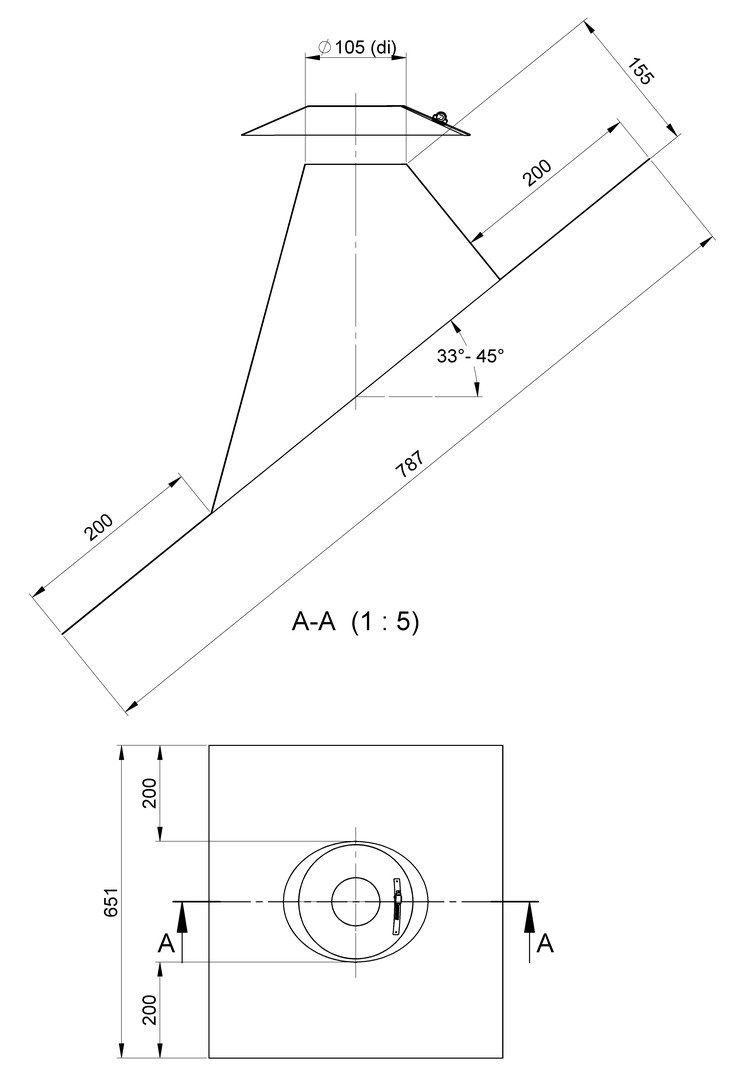 AT Dachdurchführung 33-45 Grad DN60/100 m. Wetterkragen Edelstahl weiß