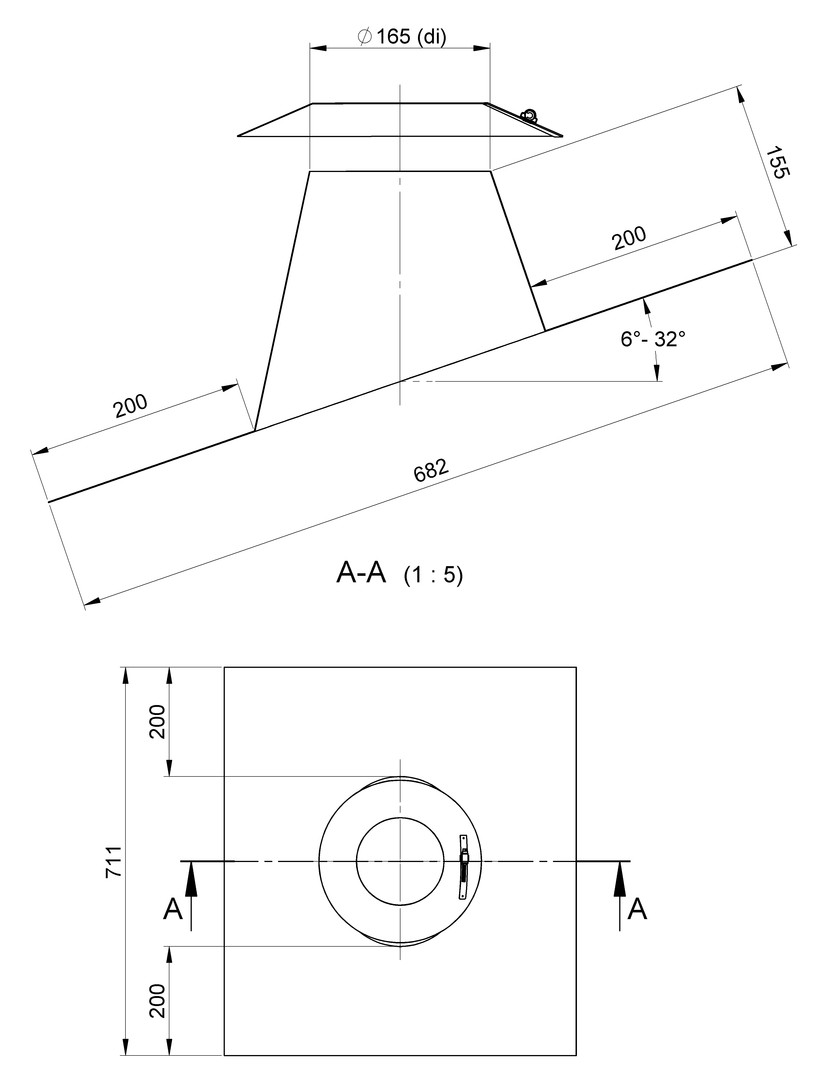 AT Dachdurchführung 6-32 Grad DN110/160 m. Wetterkragen Edelst. verkupfert