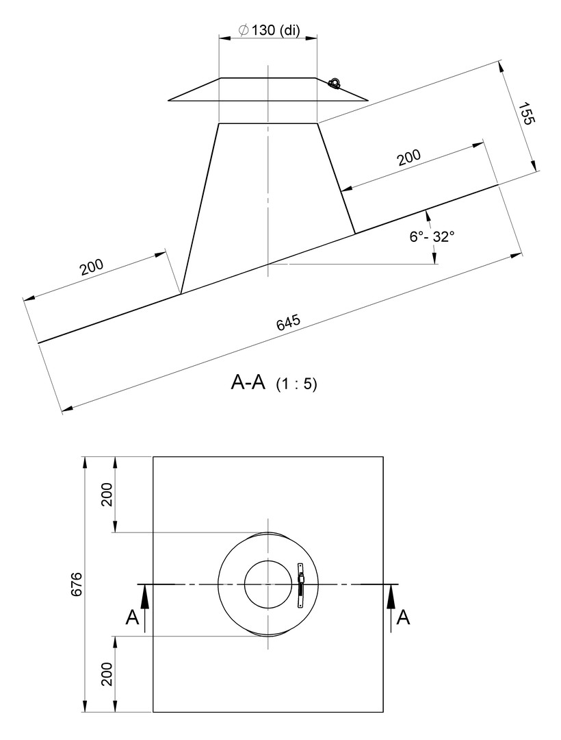 AT Dachdurchführung 6-32 Grad DN80/125 m. Wetterkragen Edelst. Weiß