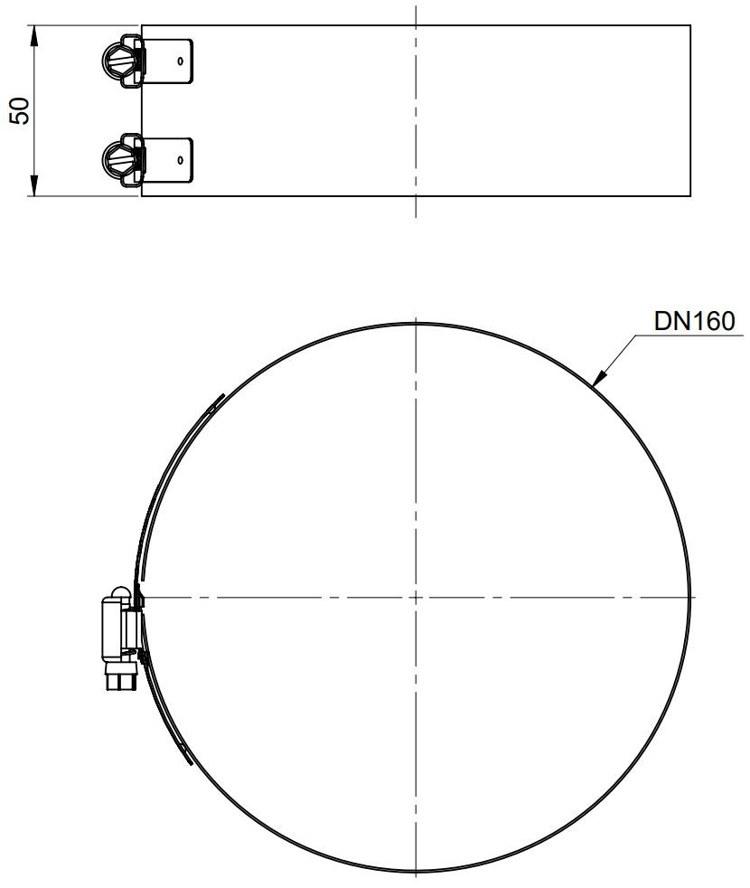 AT Klemmband DN110/160 Edelstahl verkupfert