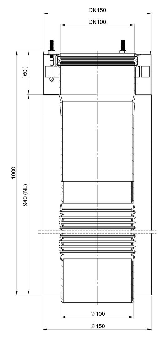 AT Kompensatorelement DN100/150, 940mm Edelstahl gebürstet