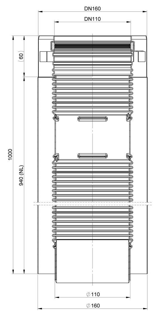 AT Kompensatorelement DN110/160, 940mm Edelstahl V4A