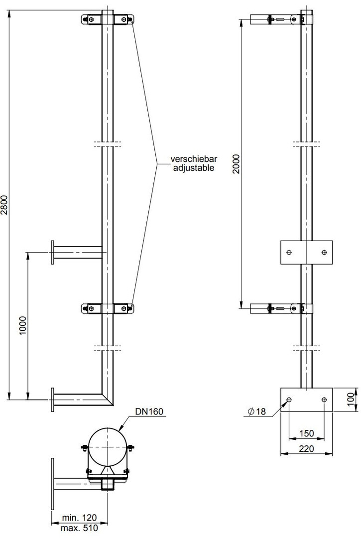 AT Kragarm aus Edelstahl für IronPoly DN110/160 Edelstahl weiß
