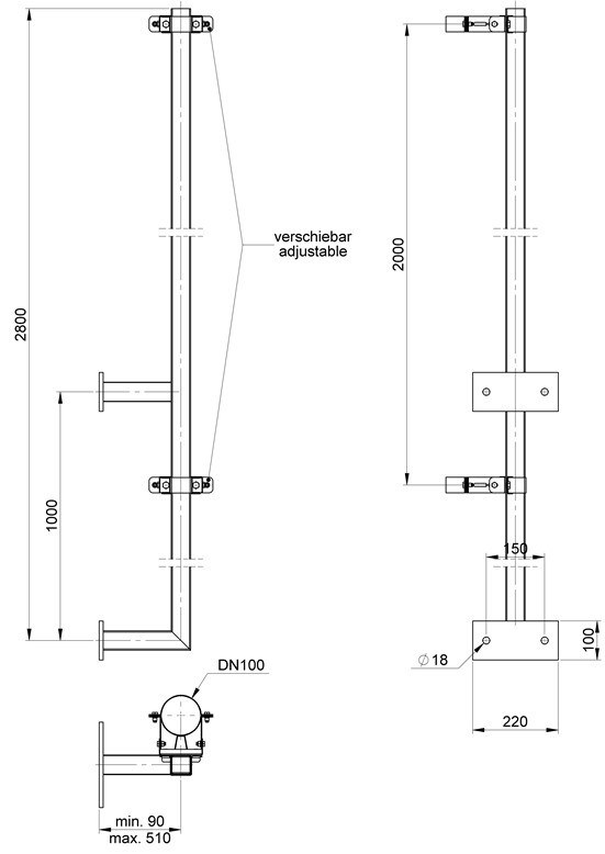 AT Kragarm aus Edelstahl für IronPoly DN60/100 Edelstahl weiß