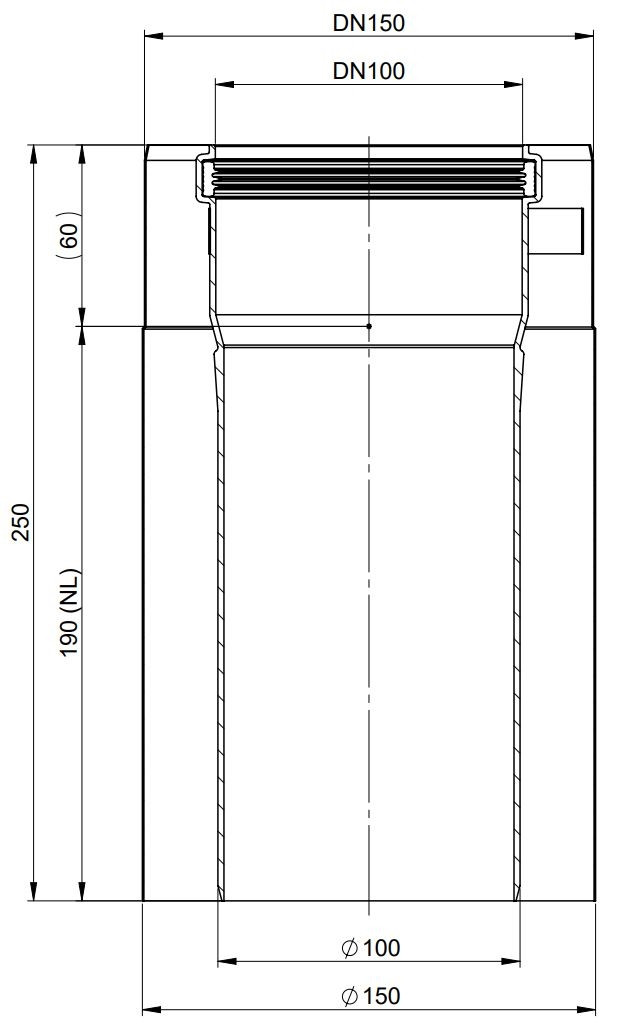 AT Rohr DN100/150, 190mm Edelstahl verkupfert