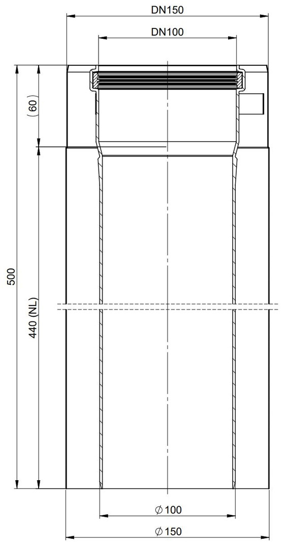 AT Rohr DN100/150, 440mm Edelstahl verkupfert