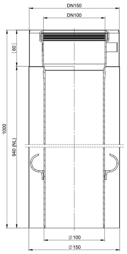 AT Rohr DN100/150, 940mm Edelstahl verkupfert