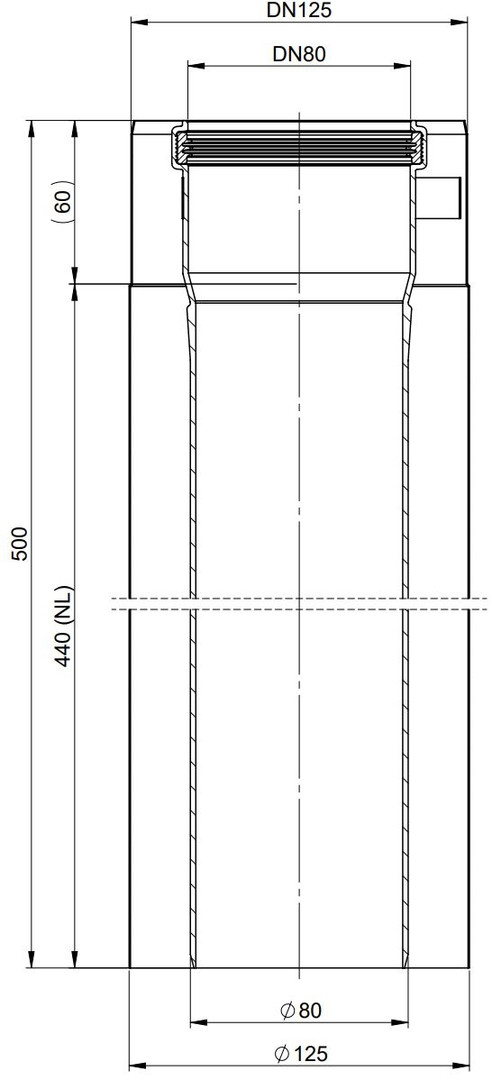 AT Rohr DN80/125, 440mm Edelstahl verkupfert