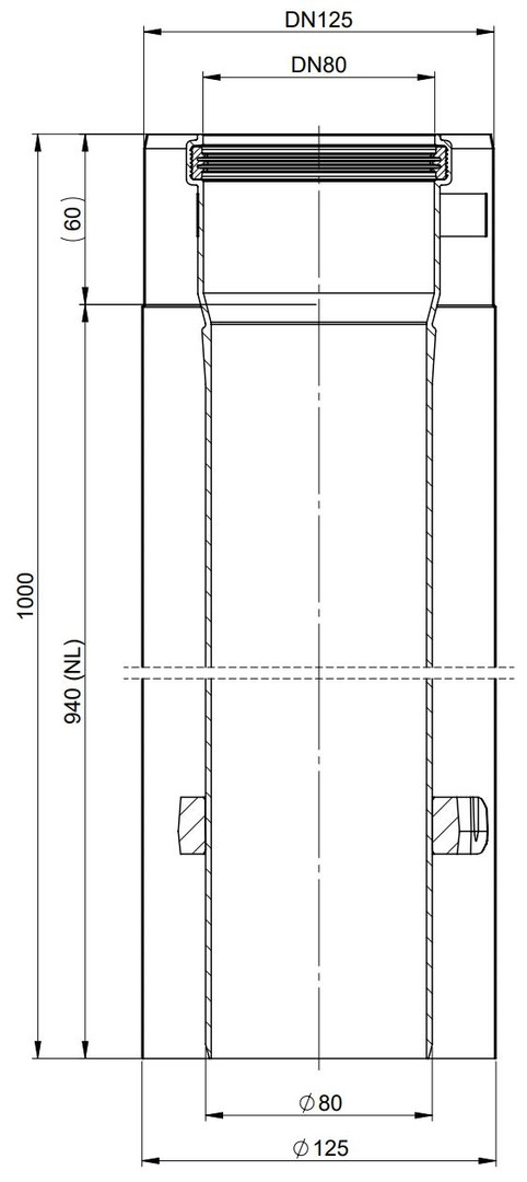 AT Rohr DN80/125, 940mm Edelstahl verkupfert