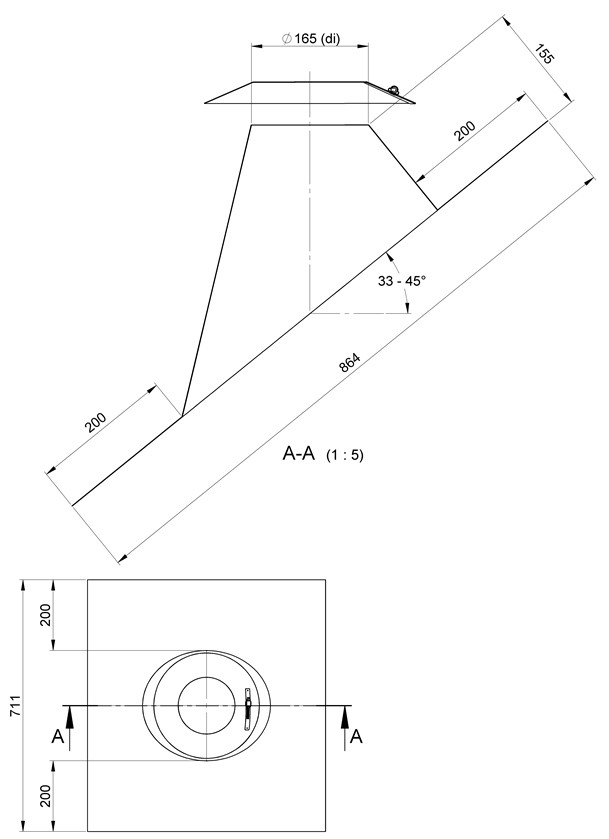 ATEC Dachdurchführung mit Wetterkragen 676 x 819 mm, DN 80/125, 33-45Grad, PP, Edelstahl blank 191339