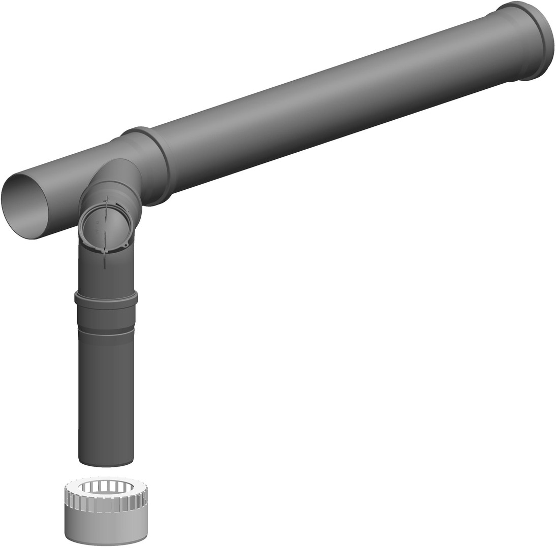 bestehend aus: Abzweig 42°, Rohr 955 mm, 87°-Kontroll-Bogen, Rohr 255 mm, Zuluftgitter bis DN 110