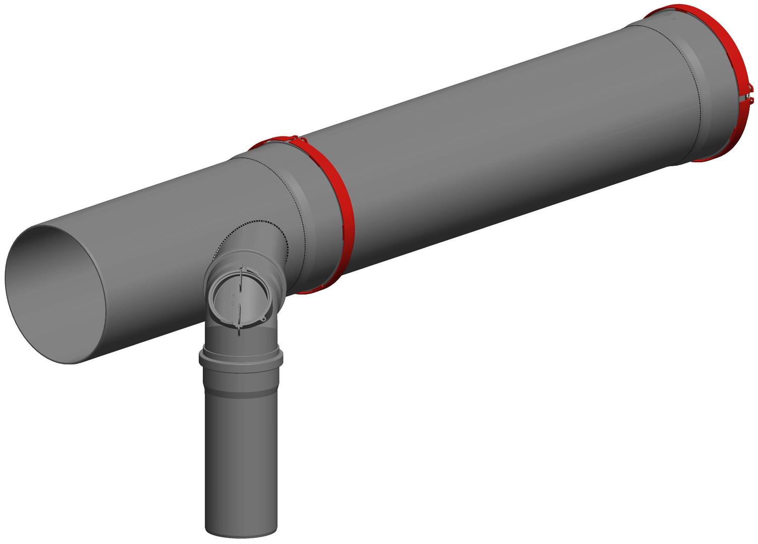 bestehend aus: Abzweig 42°, Rohr 955 mm, 87°-Kontroll-Bogen, Rohr 255 mm, Zuluftgitter bis DN 110
