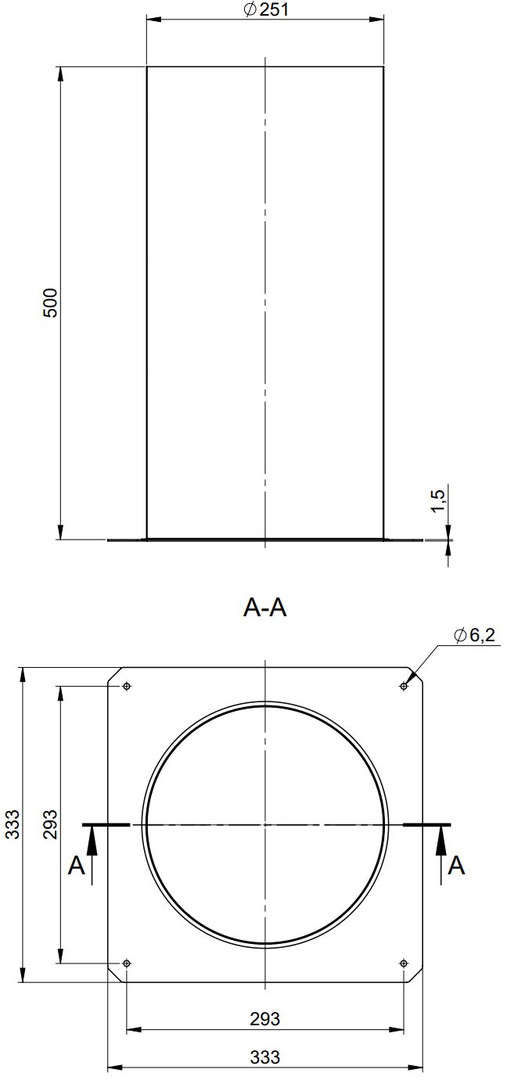ATEC Festbrennstoffzugerhöhung PolyTop 333 x 333 mm, Erhöhung Ø 250 mm, Ziegelschornstein