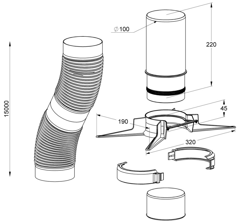 ATEC Flexrohr-Set PolyTop DN 100, kürzbar mit Montageset 15 m