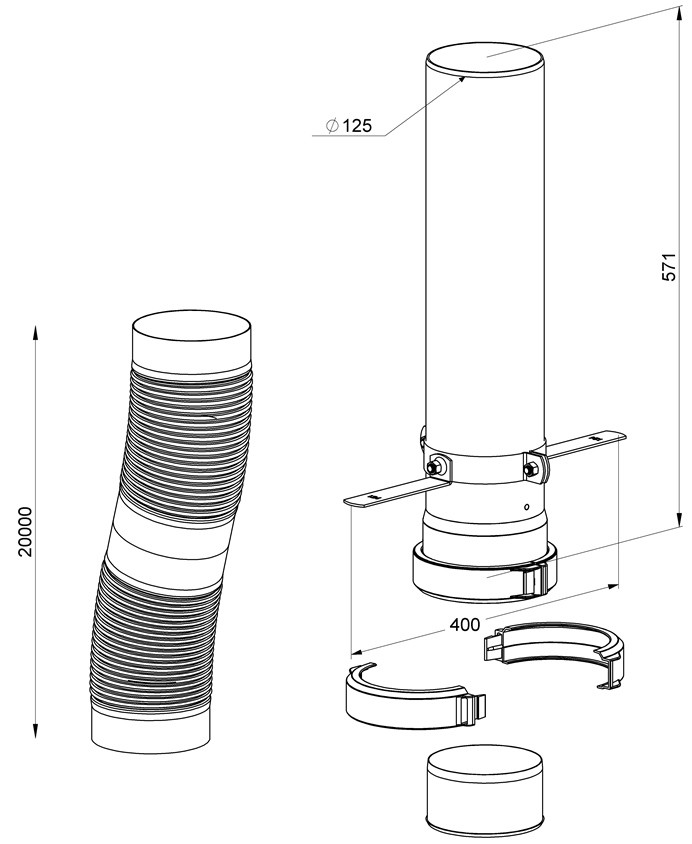 ATEC Flexrohr-Set PolyTop DN 125, kürzbar mit Montageset 20 m