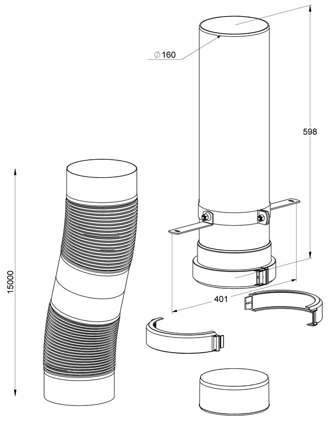 ATEC Flexrohr-Set PolyTop DN 160, kürzbar mit Montageset 15 m