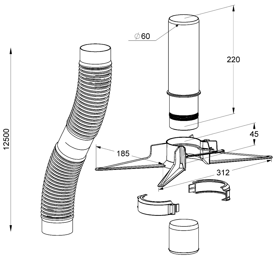 ATEC Flexrohr-Set PolyTop DN 60, kürzbar mit Montageset 12,5 m W604201