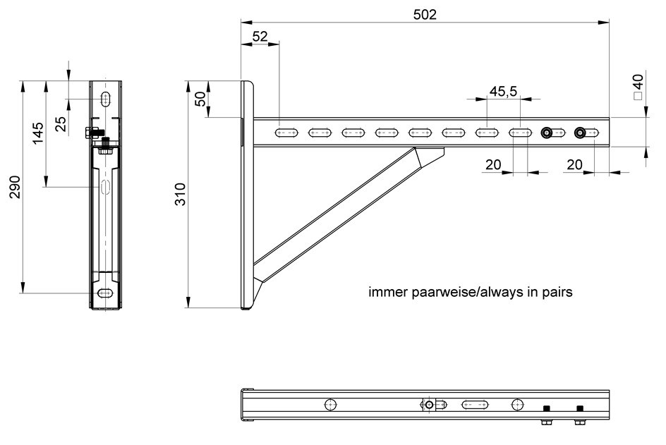 ATEC Querträger 500 mm, Edelstahl blank, PP, kürzbar