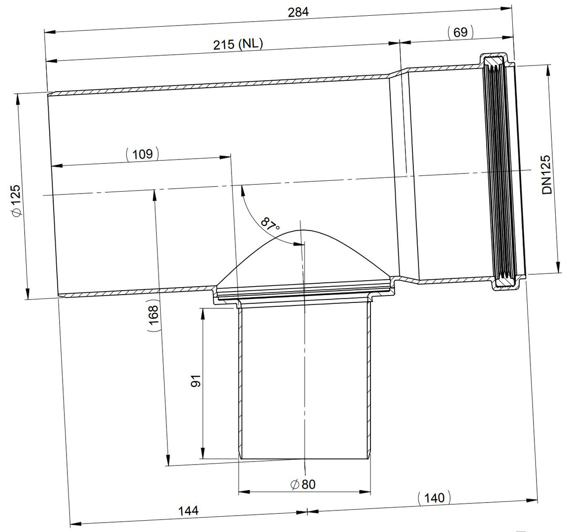 ATEC T-Stück PolyTop DN 125 x 80 x 125
