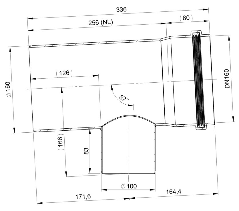 ATEC T-Stück PolyTop DN 160 x 100 x 160