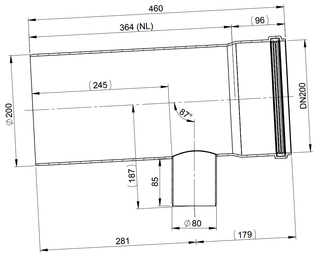 ATEC T-Stück PolyTop DN 200 x 80 x 200