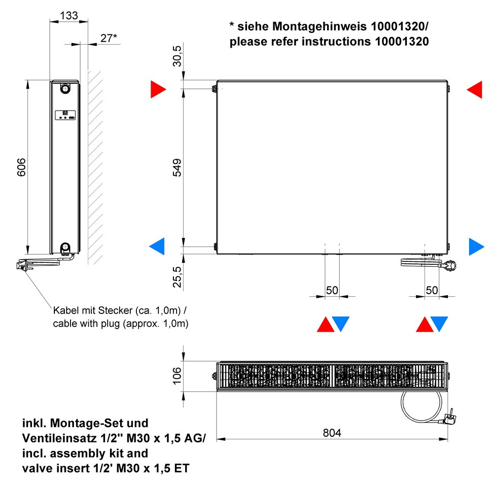 Typ 22, 8 Loch Anschlüsse, einsetzbar in alle Heizungssysteme, Austausch bestehender Heizkörper, elektronische Drehzahlregelung mit Boost-Funktion, geräuscharmer Betrieb, 1 W je Lüfter Stromaufnahme, förderfähig