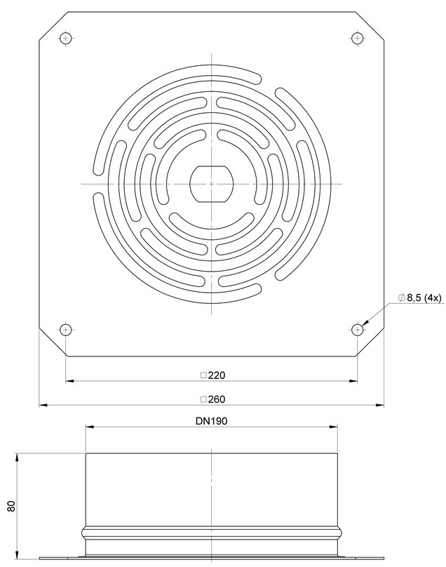 ATEC Verankerungsplatte PolyClassic +Iron/White DN 60/100, PP, Edelstahl blank W605016