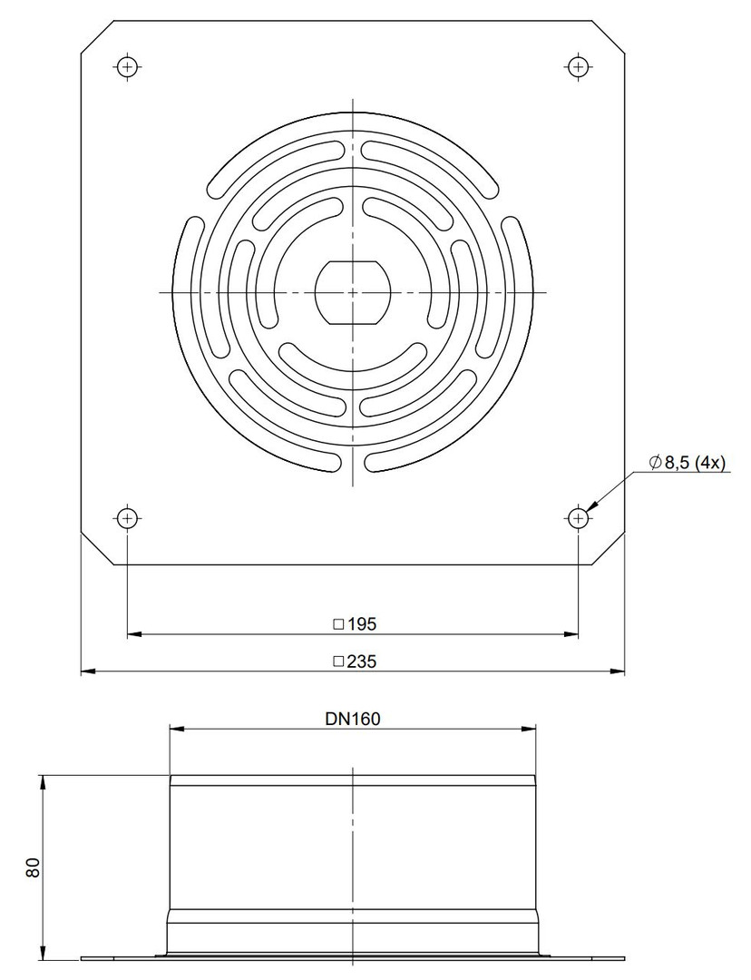 ATEC Verankerungsplatte PolyClassic +Iron/White DN110/160, PP, Edelstahl blank