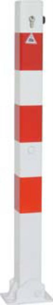 Absperrpfosten rot/weiß H900xB70xT70 mm umlegbar mit Profilzylinder zum Aufdübeln Schake