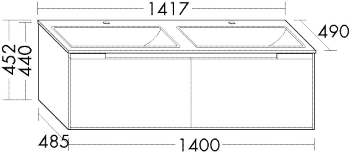 Burgbad Keramik Doppelwaschtisch-Unterschrank-Set YSO 141,7x45,2x49cm, 2 Auszüge, Waschtisch eckig, Lackiert Hochglanz W509211