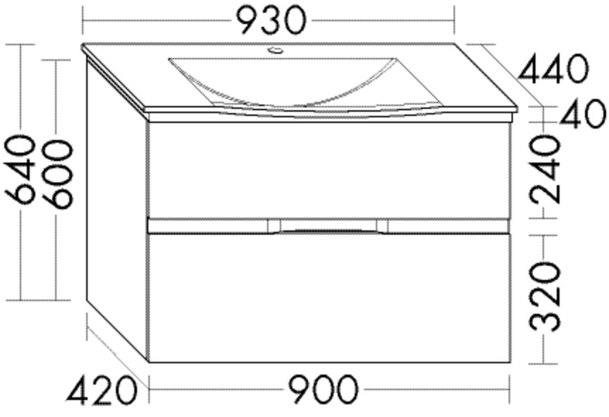 Burgbad Mineralguss-Waschtisch Unterschrank-Set Orell 93 x 64 x 44 cm, Lackiert Hochglanz, 1 Schublade/1 Auszug, Waschtisch weiß W511492