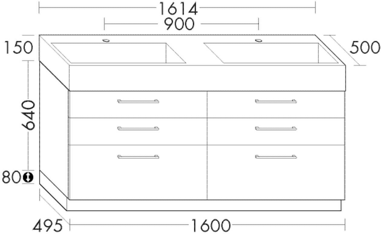 Burgbad Mineralguss Doppelwaschtisch-Unterschrank-Set Crono 161,4x87x50cm, 6 Auszüge, Lackiert Hochglanz W509512