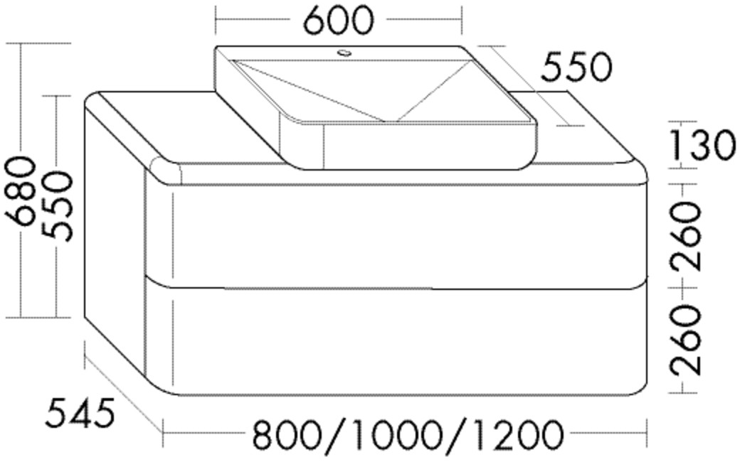 Waschtisch: Muldentiefe 113 mm, Unterschrank: 2 Auszüge, mit cleanFlow