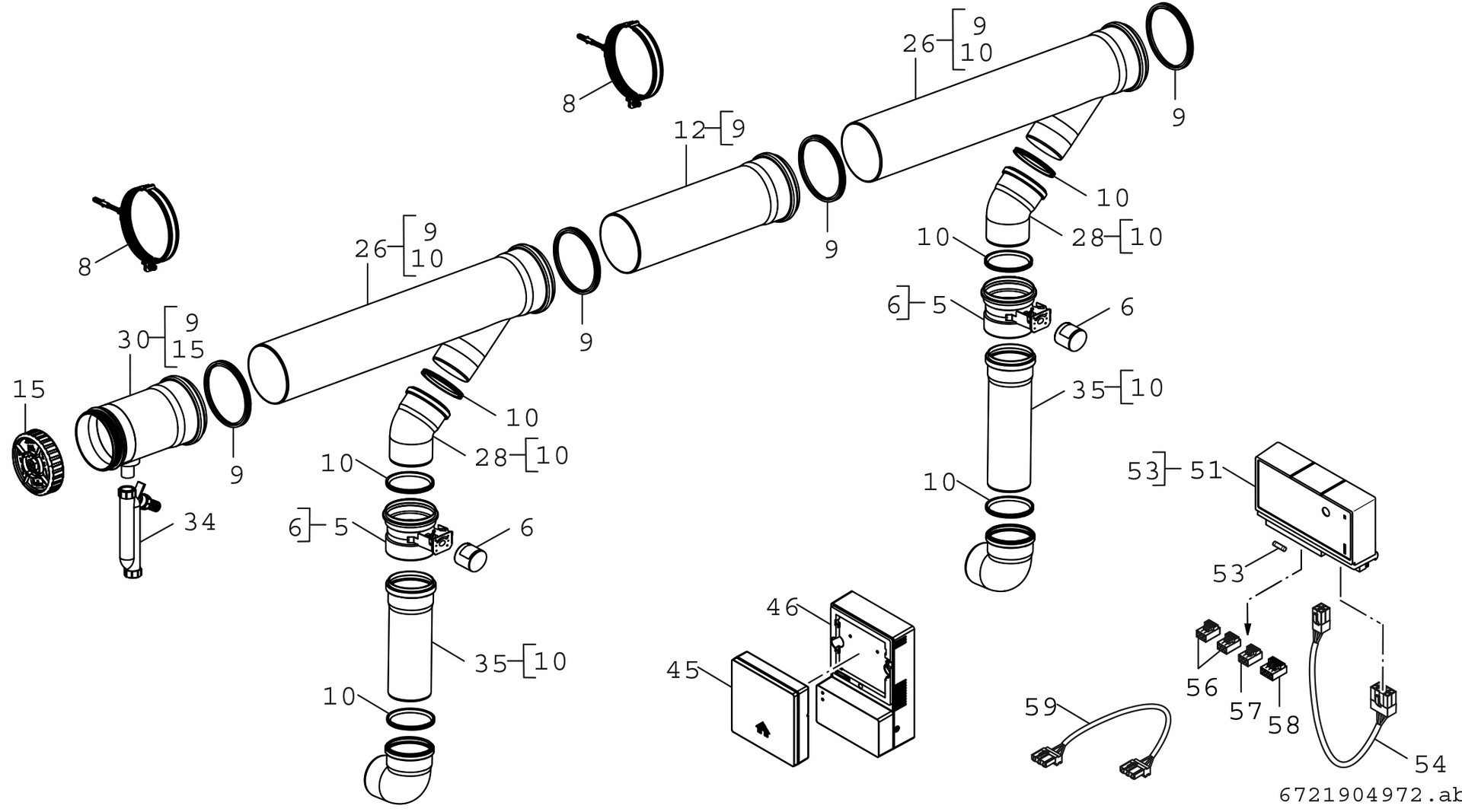 für Condens 7000 F, für Kaskadenleistung 2x 75 kW oder 2x 100 kW-DN110, auf DN 125, mit Universal-Lastschaltmodul UX15, Abgassperrklappen und CO-Sensor