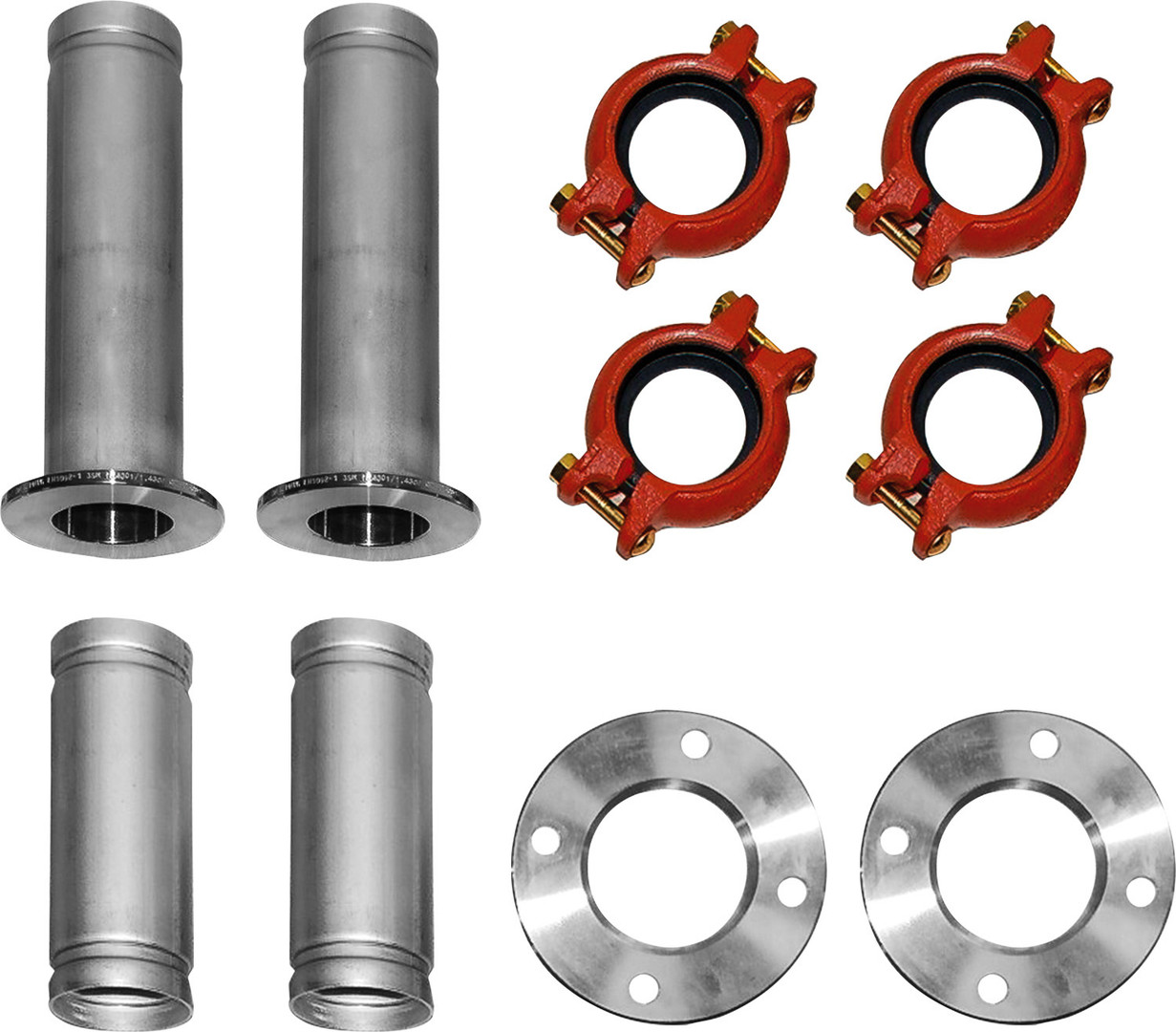 Vor-/Rücklauf für Sole und Heizung, beinhaltet Victaulic Flex-Kupplung, Verbindungsrohre und 4x Lötflansche PN6-DN 80, Gegenflansch mit Schrauben und Dichtung ist je nach Installationsart bauseits zu liefern