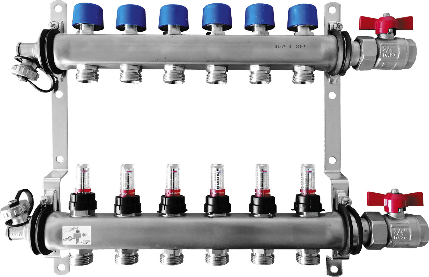 BOSCH Edelstahlverteiler für max. 6 Heizkreise, DFM 0-5 l/min