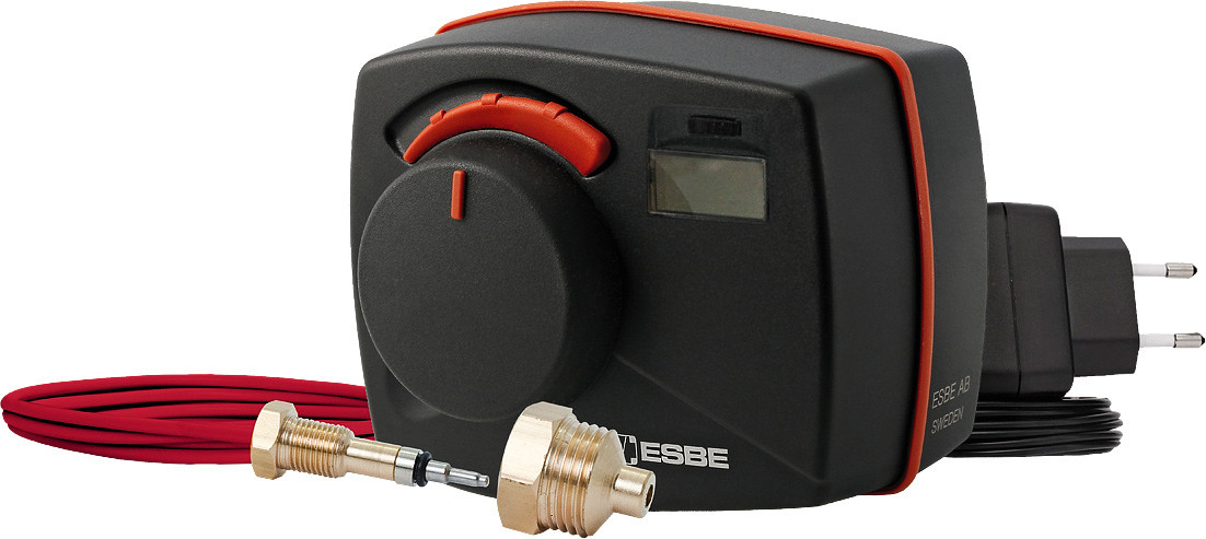 mit verlängertem Nassfühler und Gewindeadapter 1/2" AG, Laufzeit 30s/90°, Drehmoment 6 Nm, 230 V, digitales Display für Einstellparameter, passend für Mischventile der Serie VRG, DWM, WWV 25-40