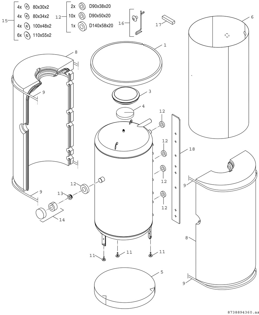 BOSCH Pufferspeicher Stora B 1000-6 ER 1 B, 1000 l, Schichtladeeinheit, rund, silber W816701