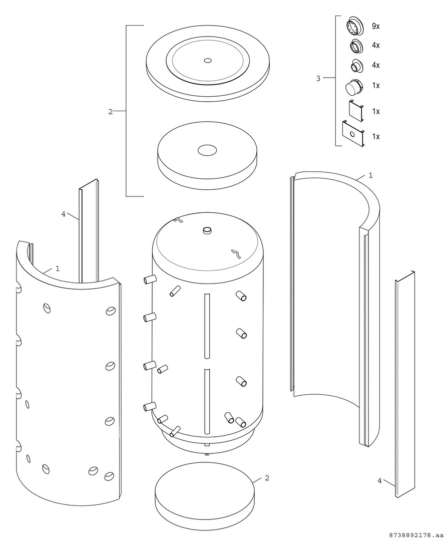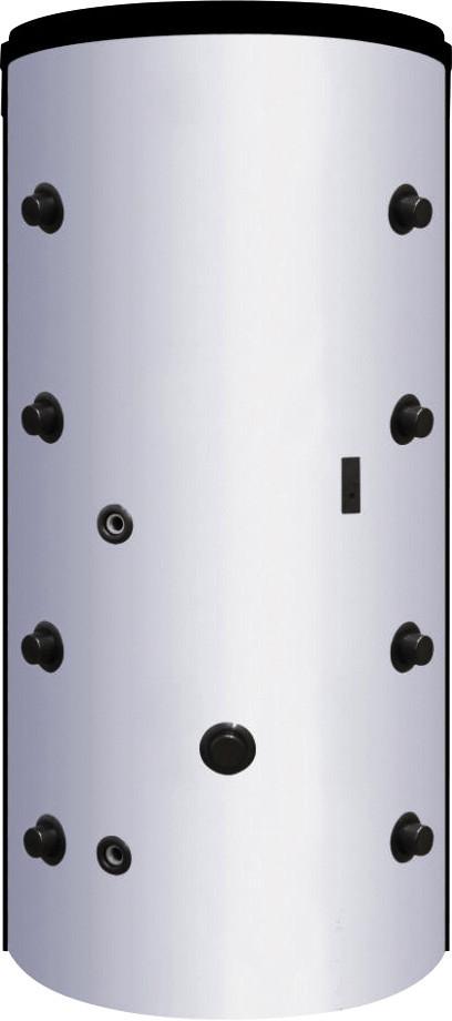 mit Edelstahl-Wellrohr zur Warmwasserbereitung im Durchlaufprinzip, großflächiger Solarwärmetauscher, effiziente Beladung durch integrierte Schichtladeeinrichtung für temperatursensible Rücklaufeinspeisung, Muffe Rp 1 1/2 für Elektroheizung, 100 mm Vliesisolierung mit Kunststoffaußenmantel weiß, Lieferung erfolgt mit 1 Trasportpalette und 1 Karton