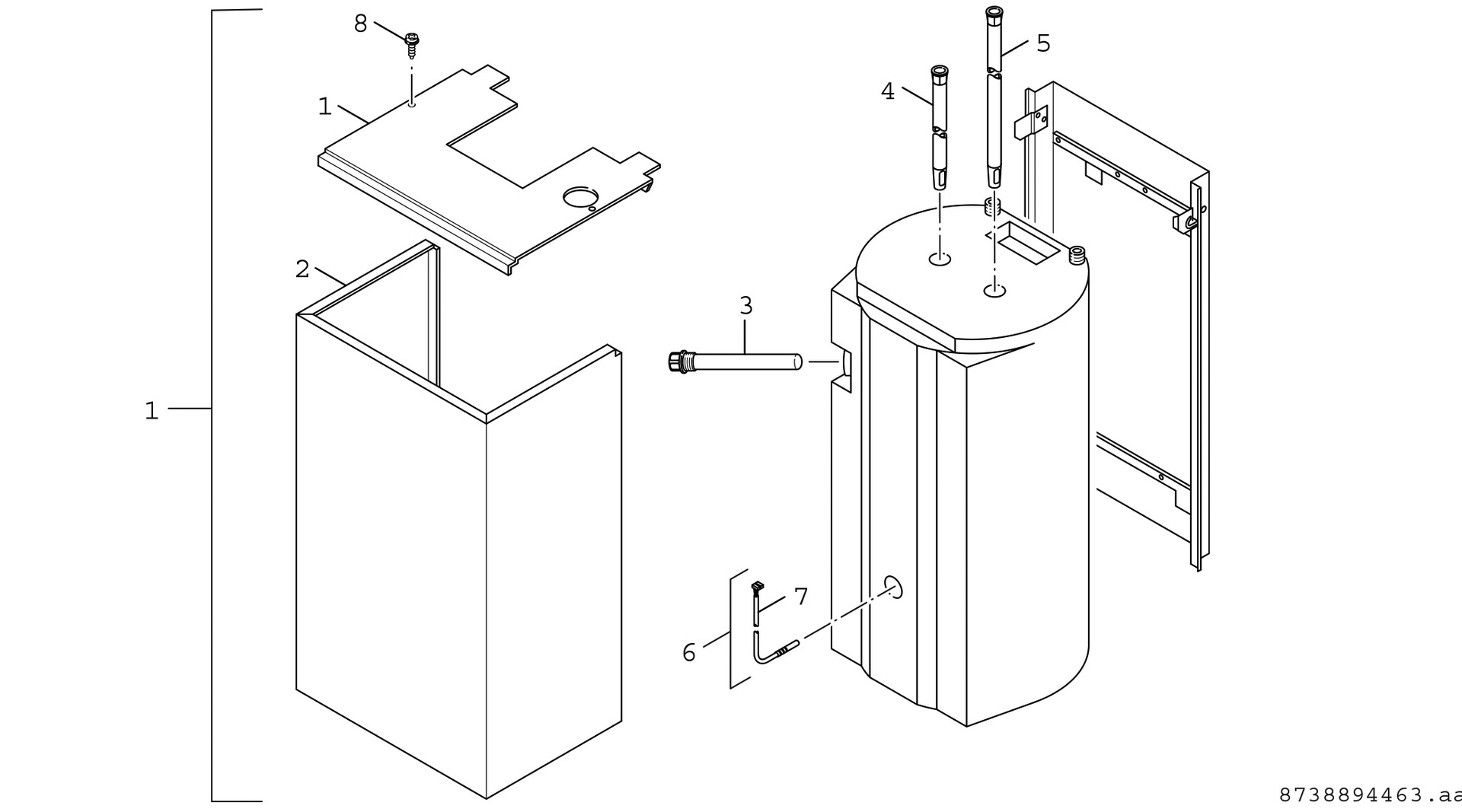 mit druckfestem, emalliertem Stahlbehälter für Duschbad (W 50 OB B) bzw. kleinere Badewannen (W 80 OB C), Verkleidung weiß, eckige Bauform, oben und unten liegende Heizungs- und Sanitäranschlüsse, Schutzanode, Wärmedämmung aus PU-Hartschaum, Nebeneinanderanordnung, Übereinanderanordnung sowie räumlich getrennte Anordnung zu Gaswandkessel jeweils mit speziellem Zubehörsatz möglich